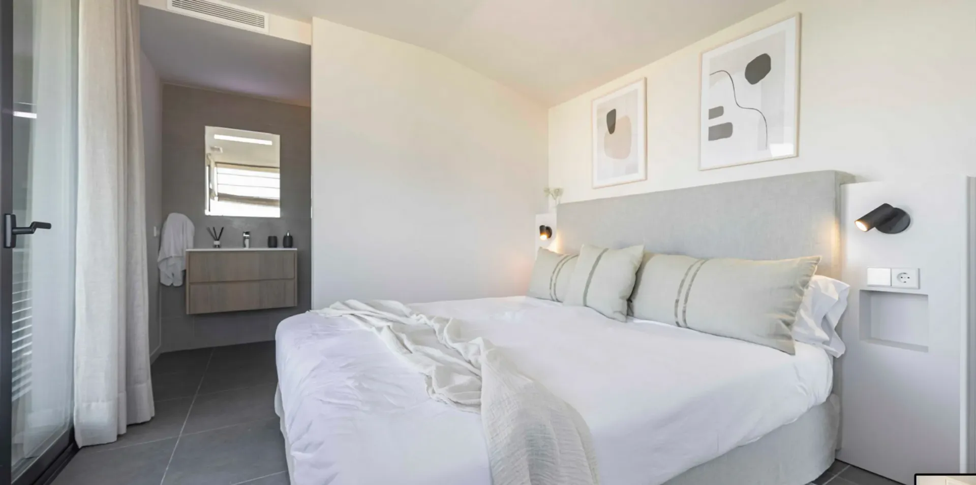 Durch bodentiefe Fensterfronten verfügen fast alle Zimmer über einen großzügigen Meerblick auf die Bucht von Pollenca.