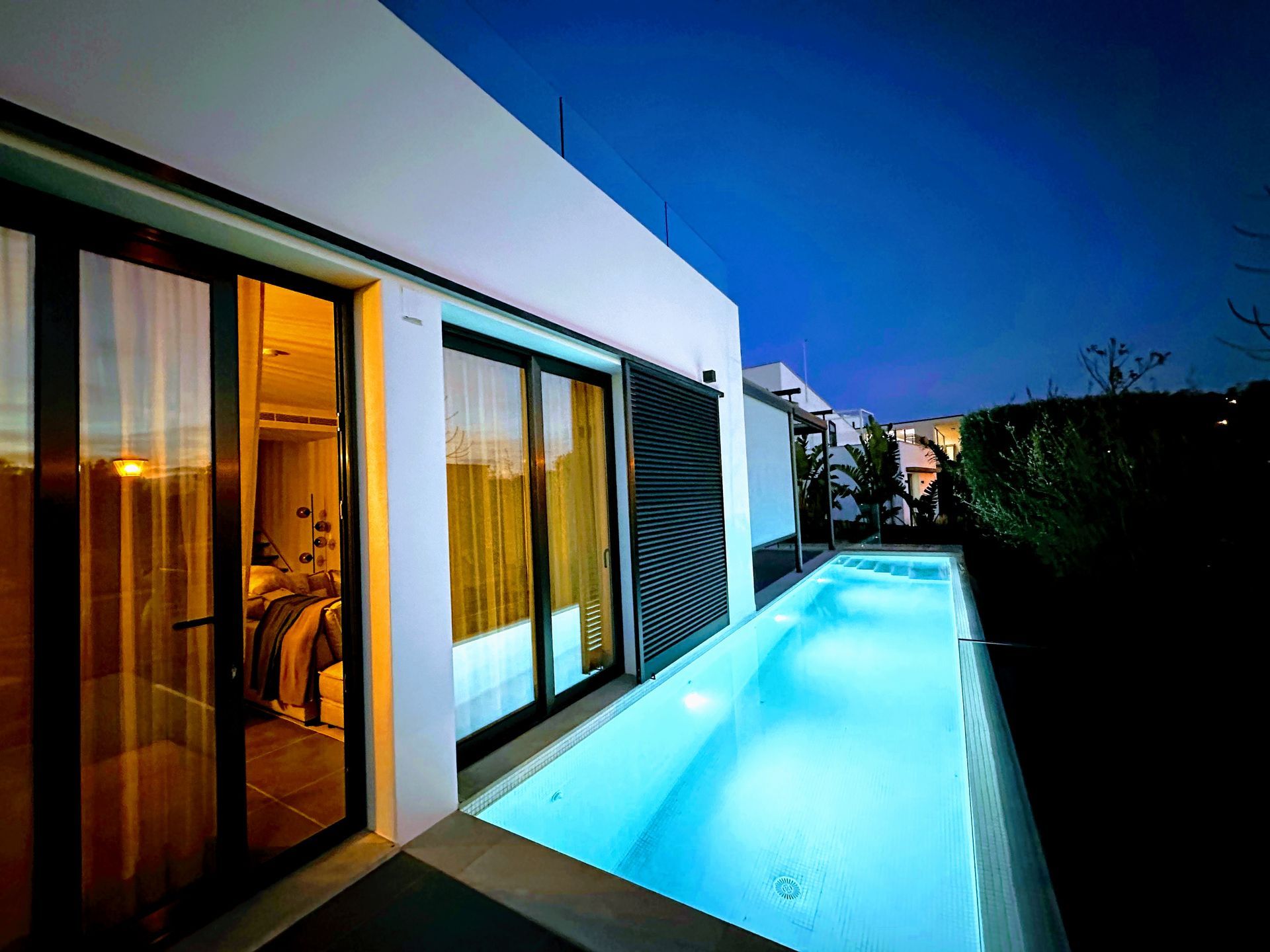 Der private Infinity-Pool mit Salzwasser bietet angenehme Abkühlung an warmen Tagen.